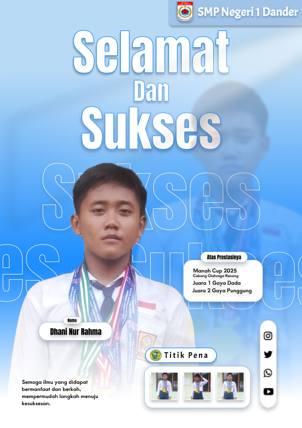 18 September 2025 Anak SMP Negeri 1 Dander siap menjadi generasi hebat Indonesia!       18 September 2025 Disiplin waktu adalah kunci sukses anak hebat.       18 September 2025 Semangat belajar setiap hari, raih cita-citamu!